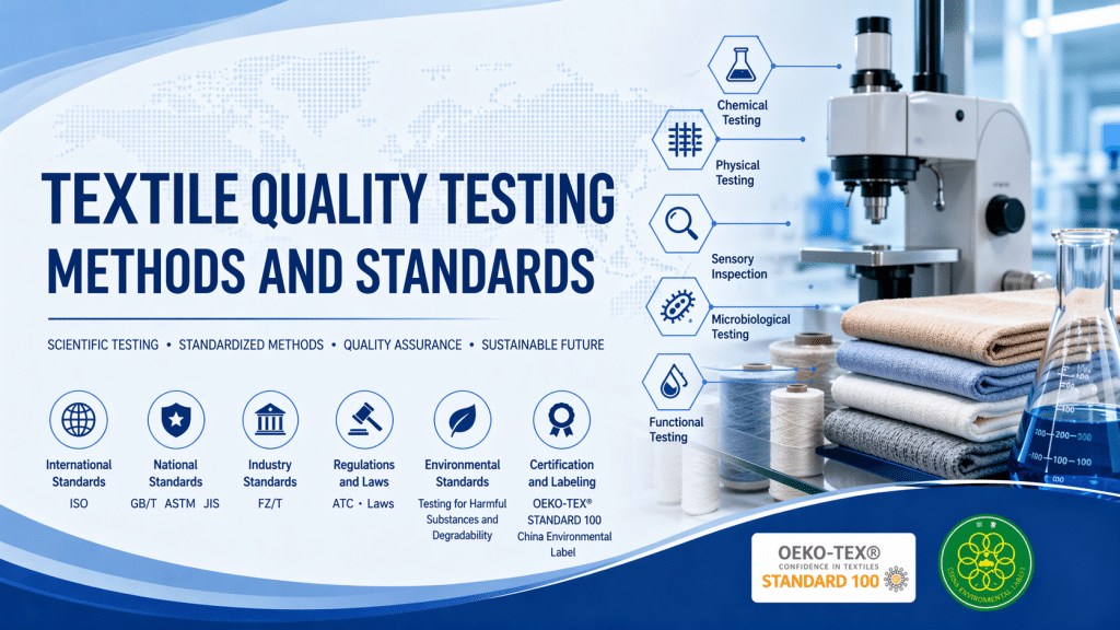The regulatory framework constitutes mandatory constraints, including international agreements such as the Agreement on Textiles and Clothing, as well as laws such as the Product Quality Law of the People’s Republic of China and the Law on Protection of Consumer Rights and Interests of the People’s Republic of China, which define quality responsibilities and market behaviors. With the strengthening of environmental constraints, the scope of testing has expanded to include indicators such as the control of harmful substances and the assessment of degradability. The certification and labeling system further provides market identification tools, such as OEKO-TEX Standard 100 and China Environmental Label, for conveying environmental and quality information of products.